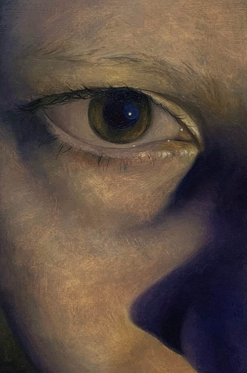 Das Auge: Auriane Bail, „hör auf dein’ Bauch“ , Öl auf MDF , 15x10cm , 2025